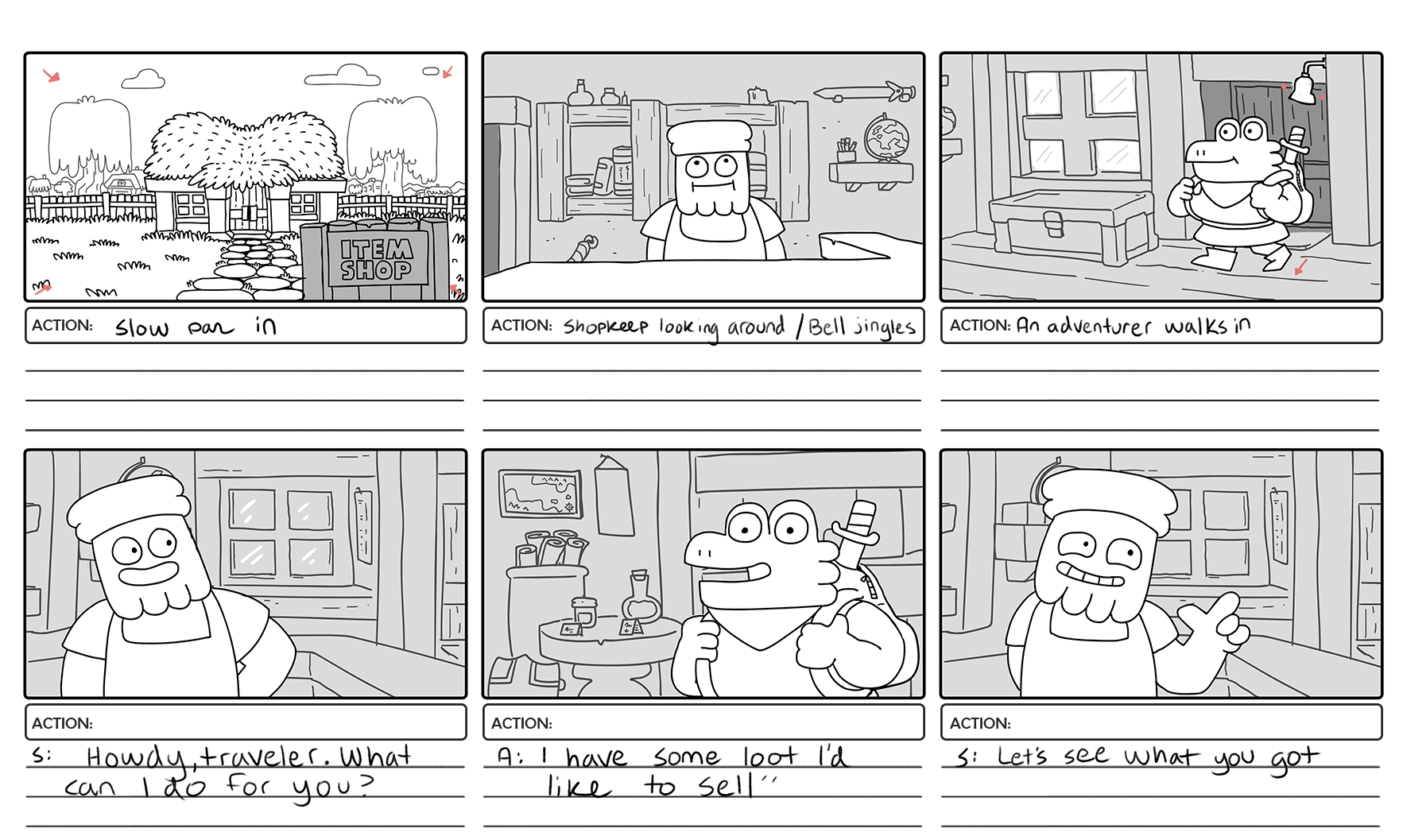 A short sequence about an exchange between a wandering adventurer and shopkeeper